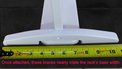 This high quality Touring SUP & Race Paddleboard freestanding rack is designed to easily store your boards in an outdoor environemnt, making it the perfect option for being used on a dock or pier.  This board rack is similar to our SUP Dock Rack but is just larger to accommodate the bigger size of Touring & Race boards. The materials used in it's construction is a marine grade material called King Starboard, which is a specialized plastic designed for marine envionments.  This means this rack can be kept outdoors, in the sun, and in & around salty environemtns; while there will be no worries about the product cracking, warping, or otherwise falling apart.  This top-notch surf rack is designed to last years, making it a perfect option for yacht clubs, SUP rental businesses, beach & lake front property, and even used on boats.